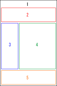上記の場合、メニューとなる3のカラムを先に記述しましたが、SEO対策としてメインコンテンツとなる4のカラムを先に記述することもできます。